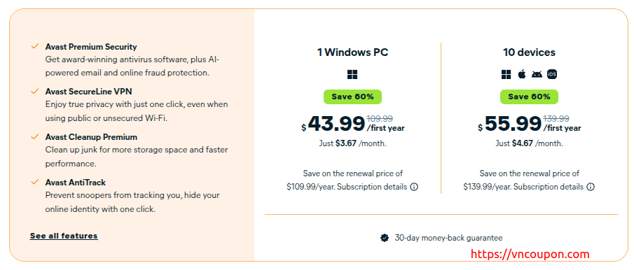 Save 60% Avast Premium Security