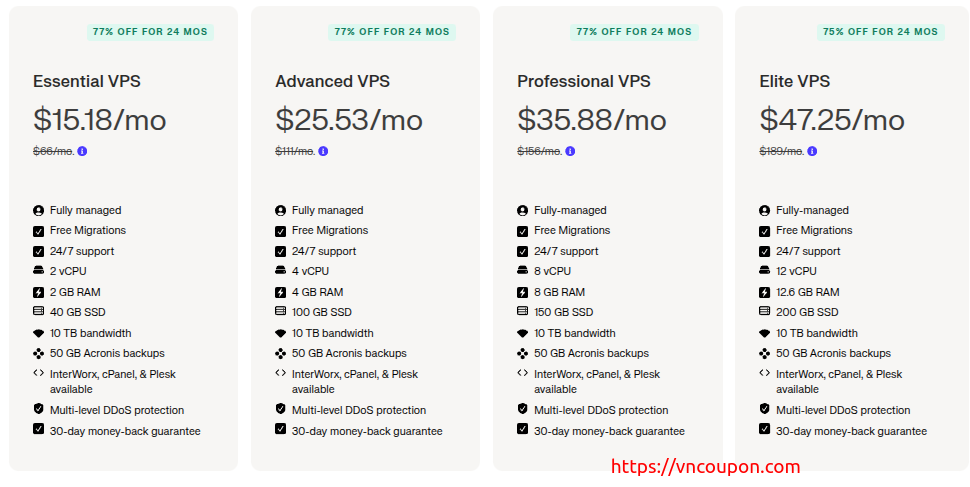 - Managed VPS – 77% off. Starting at $15.18/mo