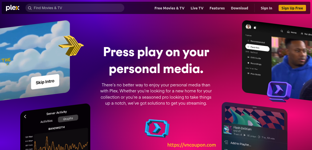 - Access free streaming of TV shows, movies and live channels with ads, making Plex more than simply your own personal media hub.