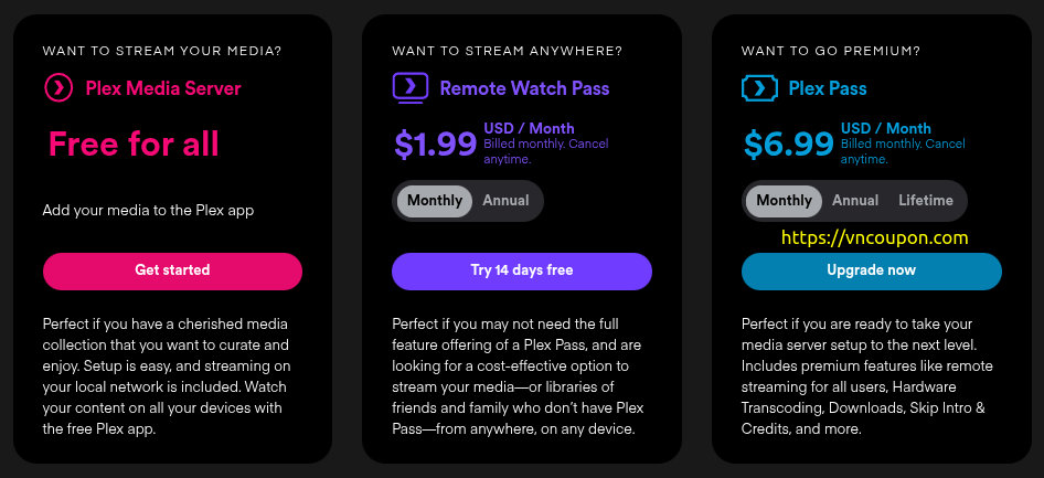 - Monthly Plex Pass: $6.99 to $4.19 for the first month