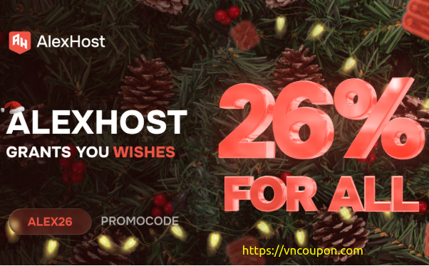 To celebrate Christmas 2025, AlexHost is offering 26% OFF all services: