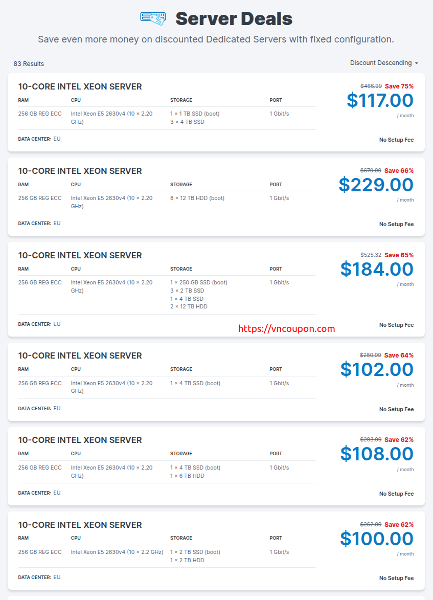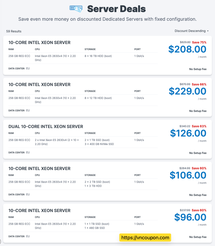 Save even more money on discounted Dedicated Servers with fixed configuration.