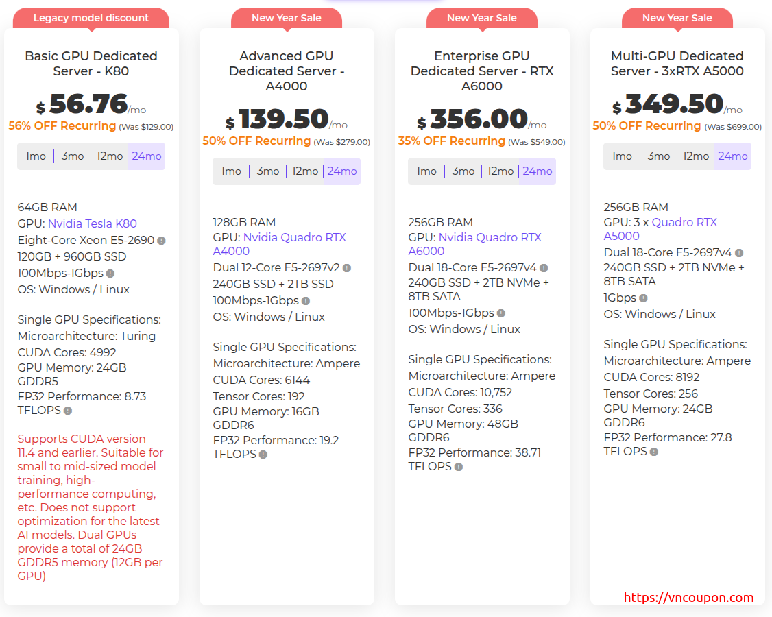 If your workload requires exclusive hardware, higher capacity, or long-term stability, Database Mart also offer GPU Dedicated Servers with limited availability.