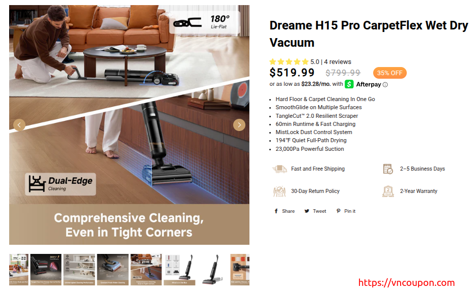 Enjoy 35% off for the Dreame’s 1st Dual-Brush Wet Dry Vacuum H15 Pro CarpetFlex!