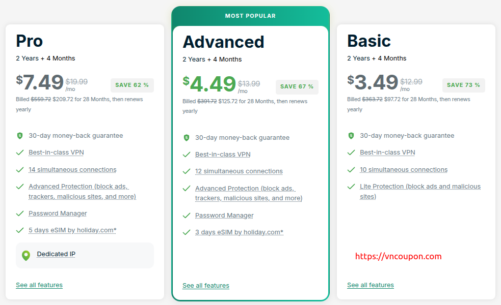 - Basic – Our core VPN experience at just $3.49/month (up to 73% off!)