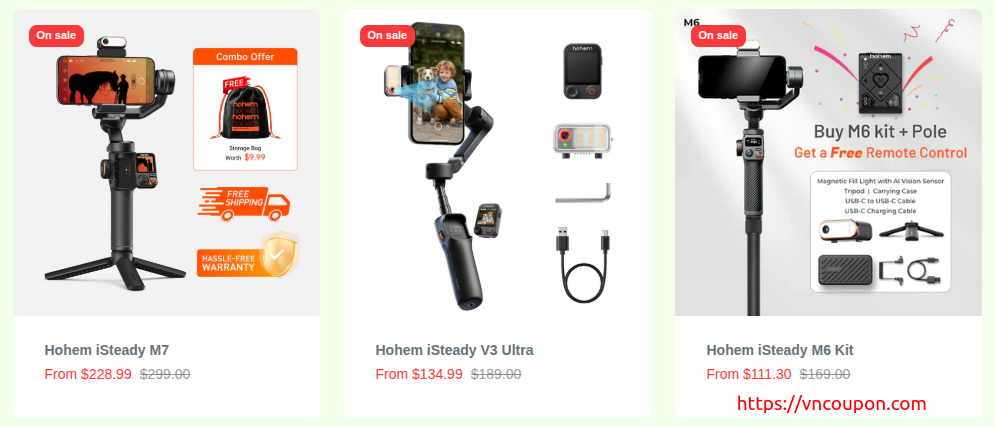 • Hohem iSteady M7 – From $228.99 (was $299.00), combo offer with free storage bag, free shipping, hassle-free warranty
