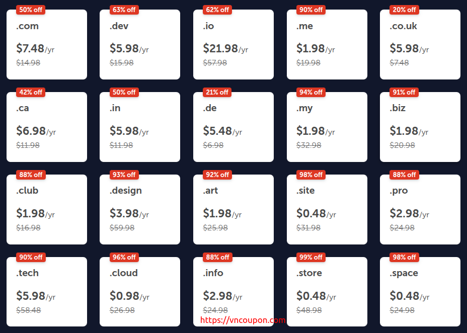 Customers can register up to 5 domains at the discounted prices with the promo code