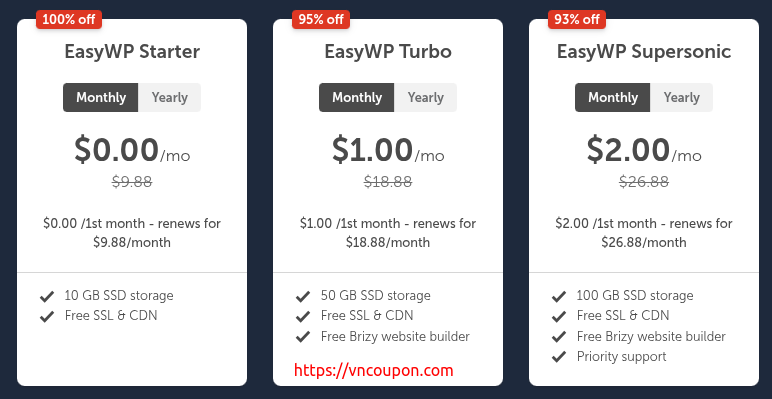 Simply click the Get EasyWP button and follow the checkout process — discounts are applied automatically.
