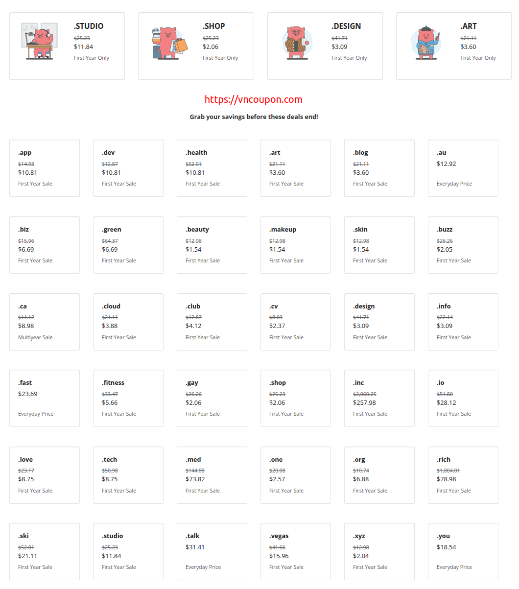 Save up to 93% off domains like .club, .biz, .co, .vip, .design, and more! Pick the perfect domain name and watch your online presence sprout. Kale, yeah!