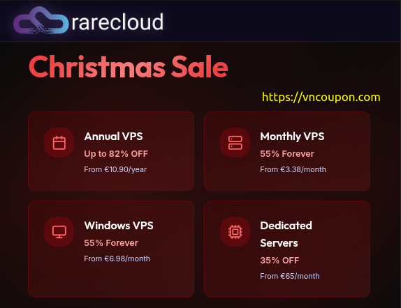 The RareCloud Christmas Sale is officially live, bringing massive savings and exciting new premium VPS locations. For a limited time, you can enjoy up to 82% OFF recurring discounts on annual VPS plans. It’s the perfect opportunity to upgrade your infrastructure, improve global performance, and lock in unbeatable pricing for a full year.