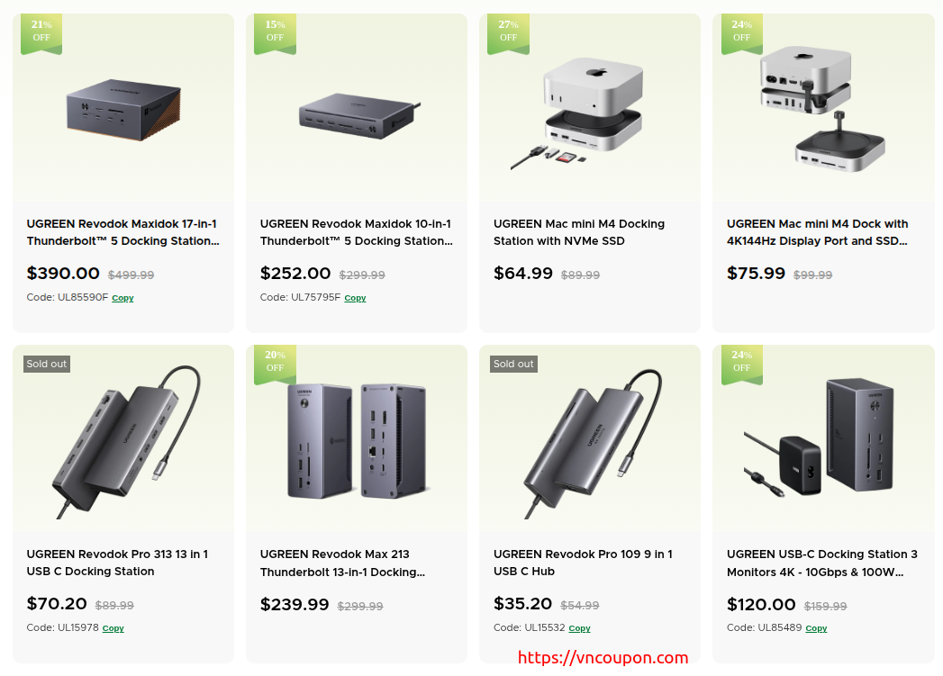 • UGREEN Revodok Maxidok 17-in-1 Thunderbolt™ 5 Docking Station – $390.00 (Code: UL85590F)