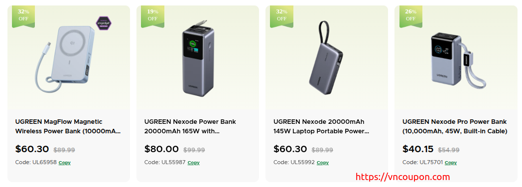 • UGREEN Nexode Pro Power Bank (10000mAh, 45W, Built-in Cable) – $40.15 (Code: UL75701)